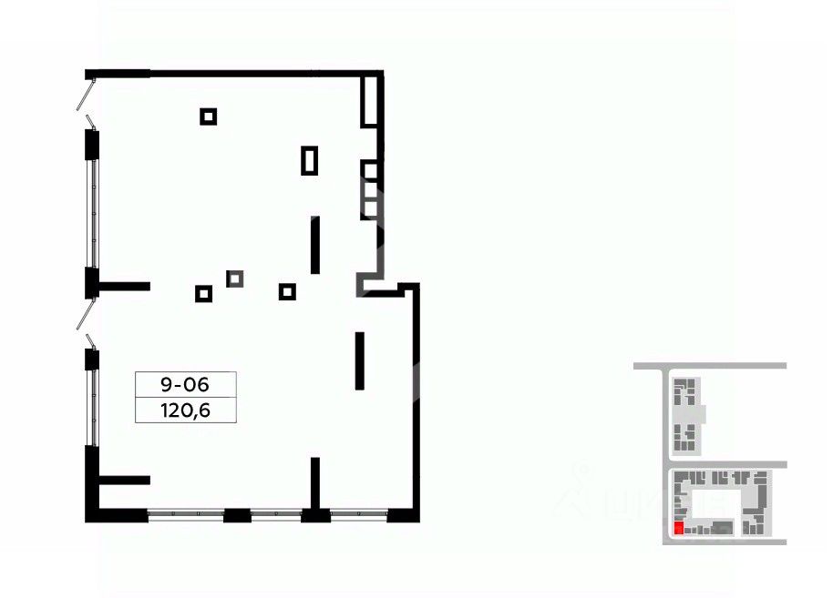 1094649. Предлагаем помещение свободного назначения, площадью 120,6 кв. м, расположенное на первом этаже 19-этажного жилого дома в ЖК "Бунинские кварталы". Корпус: 9.1. Без комиссии для покупателя.