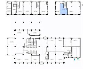 -офисный квартал состоит из 5 корпусов переменной этажности (от 12 до 13 этажей);