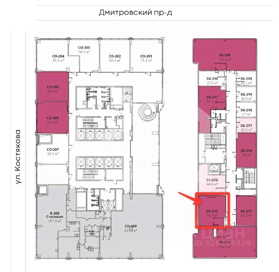 1102542. Предлагаем к приобретению торговое помещение, площадью 55.5 кв. м., расположенное на втором этаже в бизнес-центре "СТОУН Дмитровская". Без комиссии для покупателя.