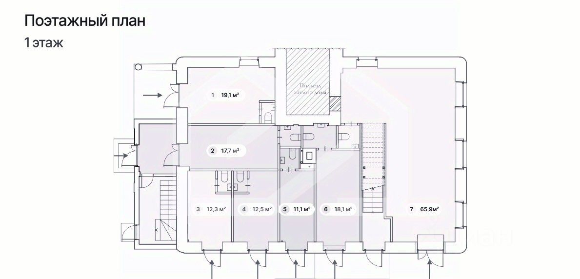 1112596. Предлагаем к приобретению торговое помещение, площадью 65,9 кв. м., расположенное на первом этаже жилого дома. Без комиссии для покупателя.
