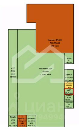 1119928. Предлагаем помещение свободного назначения в МФК "Митино Парк", площадью 39.2 кв. м, расположенное на первом этаже 3-этажного здания. Без комиссии для покупателя.