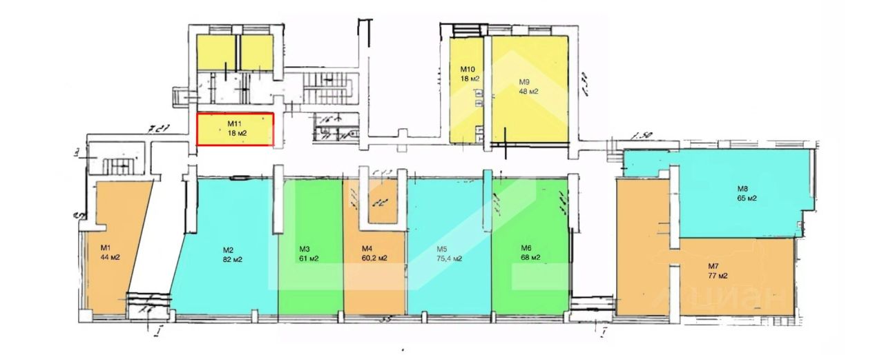 1166920. Предлагаем помещение свободного назначения во встроенно-пристроенной части, площадью 18 кв. м, расположенное на первом этаже 9-этажного жилого дома. Без комиссии для покупателя.