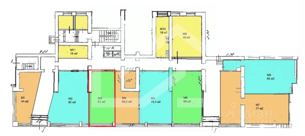 1166932. Предлагаем помещение свободного назначения во встроенно-пристроенной части, площадью 61 кв. м, расположенное на первом этаже 9-этажного жилого дома. Без комиссии для покупателя.