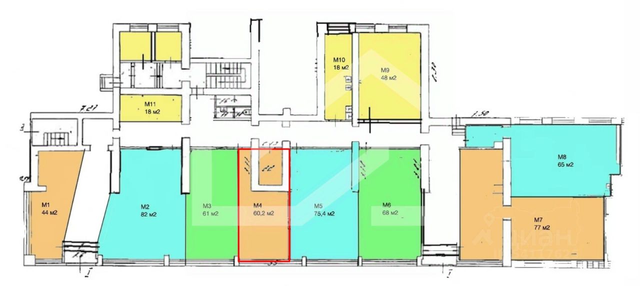1166933. Предлагаем помещение свободного назначения во встроенно-пристроенной части, площадью 60.2 кв. м, расположенное на первом этаже 9-этажного жилого дома. Без комиссии для покупателя.