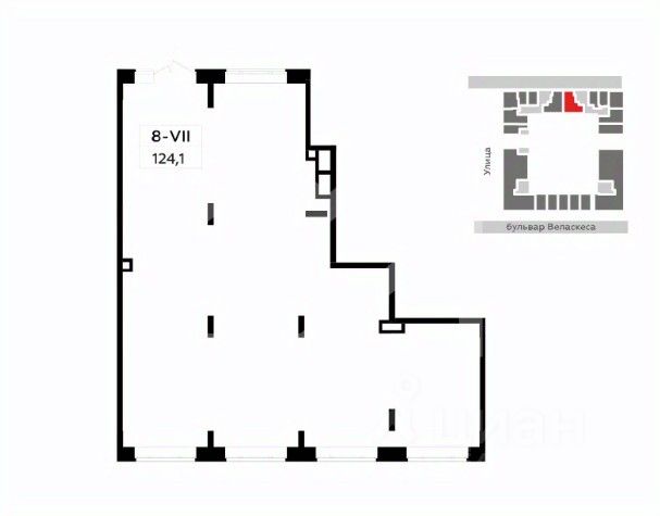 1171316. Предлагаем помещение свободного назначения в ЖК "Испанские кварталы 2", площадью 124.1 кв. м, расположенное на первом этаже 15-этажного жилого дома. Корпус 8.1. Без комиссии для покупателя.