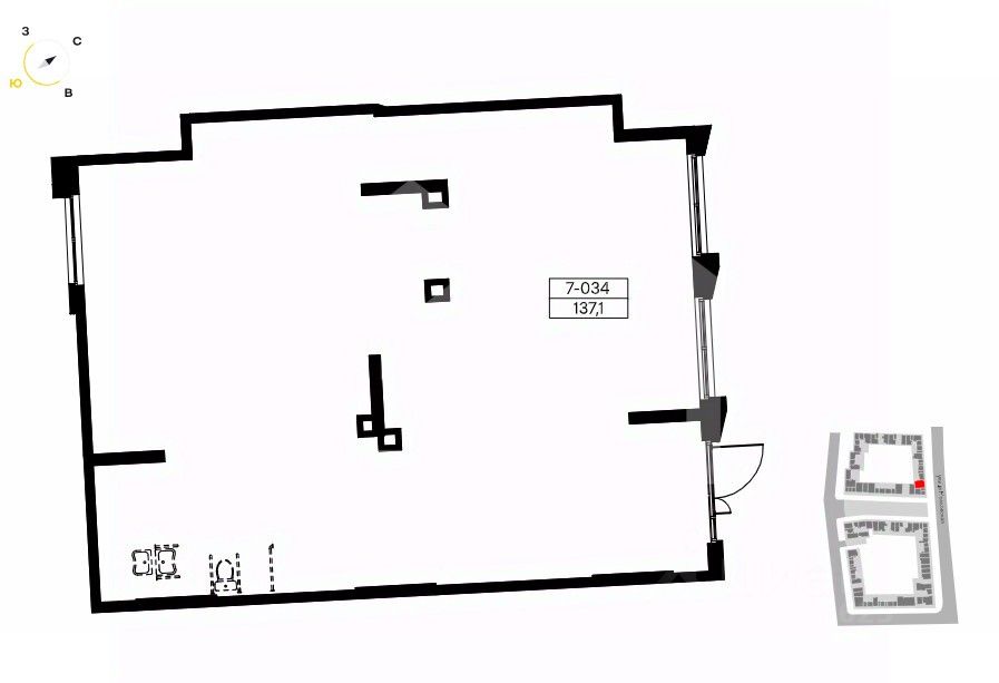 -высота потолков: 6 м.