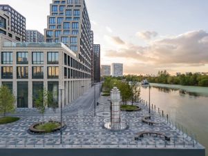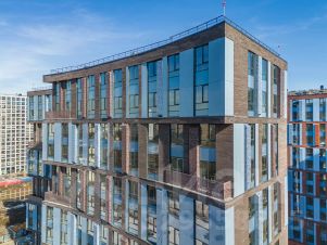 Корпус 14 в Ривер Парк Бизнес — это продуманная деловая среда, где сочетаются функциональность, архитектурная сдержанность и комфорт. Низкоэтажная застройка формирует более спокойный и камерный ритм, выгодно отличаясь от классических высотных бизнес-центров. Дизайнерские входные группы и лобби с высотой потолков 6,35 м подчеркивают статус проекта.