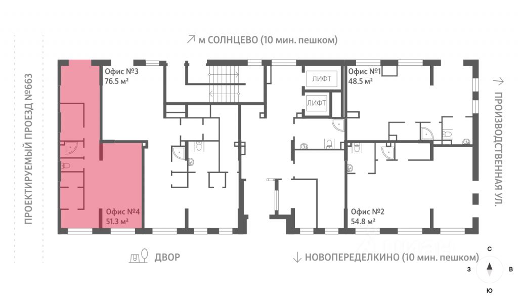 Группа ЛСР предлагает нежилое помещение 51,2 кв.м в ЖК "Лучи-2", Корпус 3-4, помещение НП_3_4Н. Первый этаж, отдельный вход, открытая планировка, высокие потолки, витринные окна. Дом сдан.