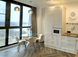 Кухня-гостиная 45 метров и 3 изолированные комнаты (14-13-13), просторная гардеробная. Неповторимый вид на реку и город.