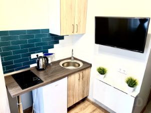 ЖК Комфорт класса "Поколение", квартира разбита на 4 уютные студии с дизайнерским ремонтом. Отличная возможность увеличить доход от аренды. При долгосрочной аренде доход 160 тыс.руб в месяц при посуточной до 200 тыс.руб. месяц. В студиях сделан стильный, продуманный до мелочей ремонт. В каждой студии спальное место для двоих человек, свой санузел и кухня. Предусмотрены места хранения. Одна студия с небольшим балкончиком. В общем коридоре есть стиральная машина и шкаф для хоз. принадлежностей. Также на время отключения горячей воды в летний период предусмотрен бойлер.