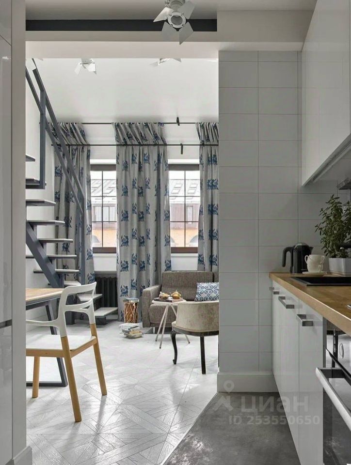 Много света и воздуха - 6 больших окон выходящих на солнечную сторону. Максимальная высота апартаментов в коньке - 8 метров. Много места для хранения одежды и мелочей. В лофте всегда тихо, так как окна выходят во двор, а так же есть возможность не открывать окно и проветривать, используя систему ТИОН.
