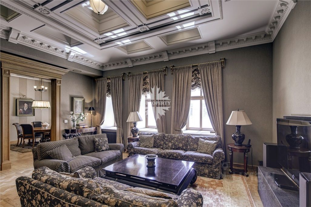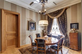 Квартира декорирована антикварными предметами мебели и искусства. Окна выходят в тихий внутренний двор и на посольство Бельгии.