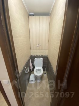 Туалет: унитаз со скрытым бачком и встроенным беде Idial Standard; распашной шкафчик над унитазом.