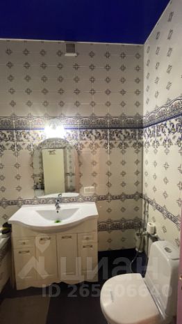 Туалет совмещенный с ванной комнатой. Стены и пол керамическая плитка, потолок натяжной с двумя светильниками.