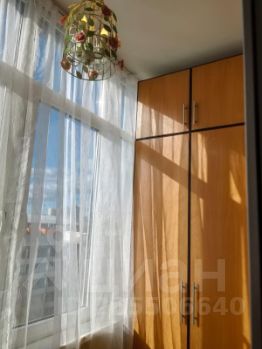 Лоджия благоустроенная, освещаемая, с меблированная шкафом. Стены покраска, пол керамическая плитка.