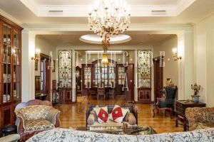 Функциональная планировка включает в себя: кухню с выходом в зимний сад, столовую-гостиную с камином, 2 спальни со своими санузлами, кабинет, гардеробную и гостевой санузел. Окна выходят на две стороны: на 1-й Неопалимовский переулок и во внутренний двор с фонтаном.
