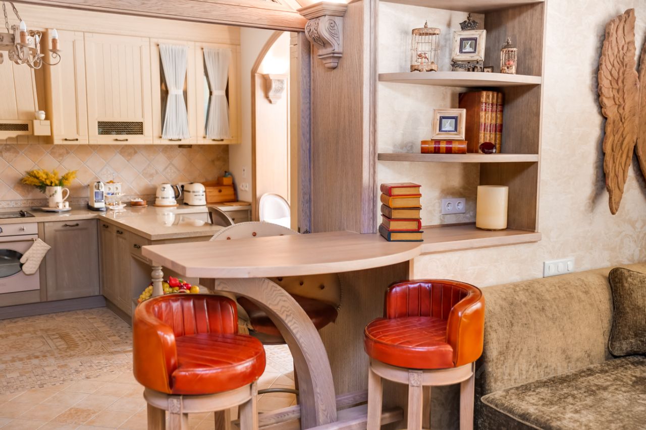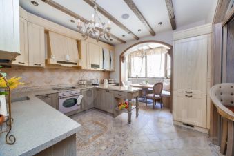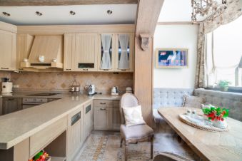 Итальянская кухня с встроенной техникой Smeg, дизайнерский свет и музыка (колонки встроены в потолок на кухне и в обоих санузлах с панелями управления).