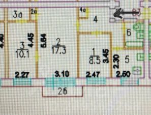Общая площадь 54 кв.м, жилая 36 кв.м