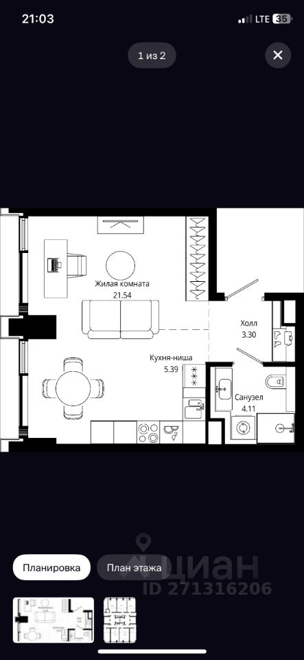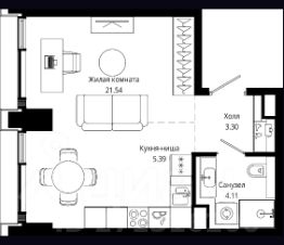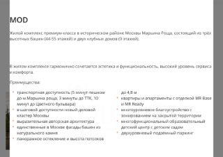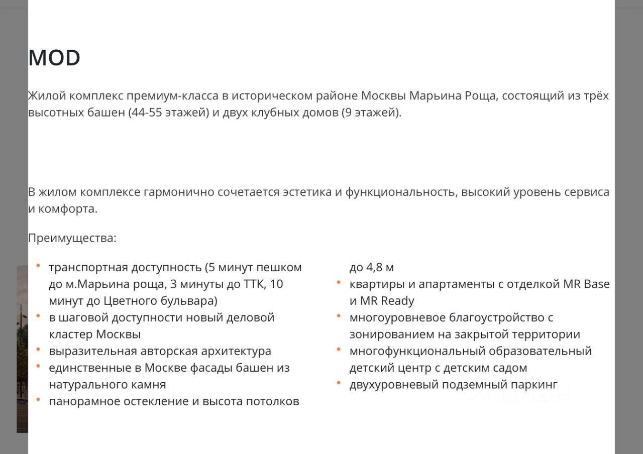 Апартамент студия 34 кв.м. в многофункциональном ЖК MOD с возможностью последующего перевода в жилое помещение.