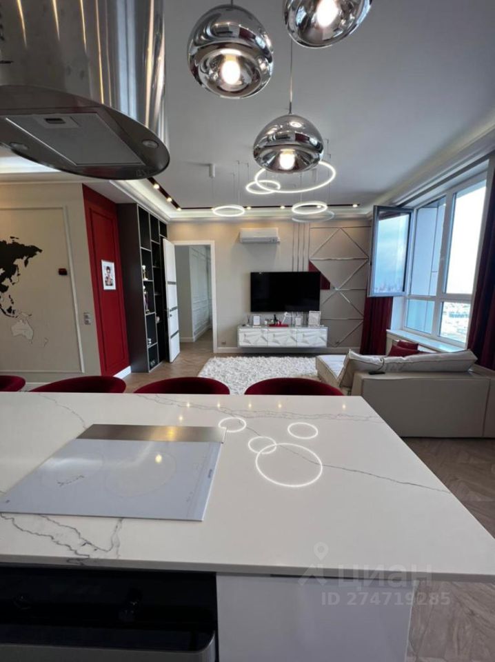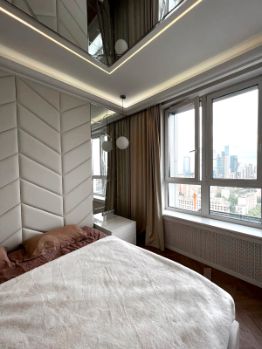 Выполнен дизайнерский ремонт, продуманный до мелочей, который позволяет визуально увеличить площадь квартиры в разы за счёт зеркал и других техник. Огромные окна делают квартиру очень светлой и солнечной. В спальне имеется зеркало на потолке, которое не оставит равнодушным любого, умная кровать, которая может приобретать форму дивана и ещё вибрировать, что очень расслабляет после тяжелого рабочего дня. Квартира оснащена всем необходимым для проживания. Мебель и техника дорогостоящие.