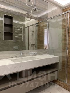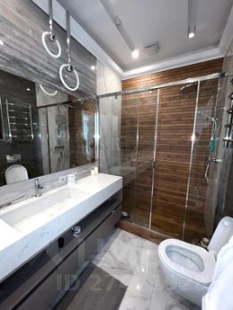 2 санузла, один общий при входе для гостей, там же расположена и стиральная машина. вторая ванная комната больше, рядом с спальной, выполнена из редчайших мраморных плит, широкий душ - для двоих , большая раковина и огромное зеркало во всю стену комфортно разместиться вдвоём .