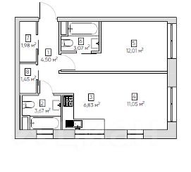 Свободная планировка, двухкамерные, панорамные окна с ПВХ и алюминиевым профилем, обеспечивающие пониженную теплопроводность и максимум естественного света. Общая площадь 45 кв.м., гостиная комната 17 кв.м., + кухня 6,9 кв.м., спальня 12,01 кв.м., гардероб 2,0 кв.м., два сан. узла, высокие трёхметровые потолки, приточно-естественная вентиляция с оборудованием NED и VKT, система индивидуального кондиционирования, делают данные апартаменты привлекательными для всех ценителей больших и светлых пространств.