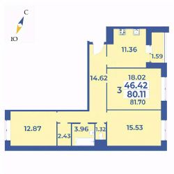 Продаётся 3-комнатная квартира в строящемся доме (Корпус 6), срок сдачи: IV-кв. 2025, общей площадью 81.7 кв.м., на 3 этаже. Монолитный жилой дом комфорт класса, под литерами "А" и "Б". Облицовка вентилируемыми фасадами.
