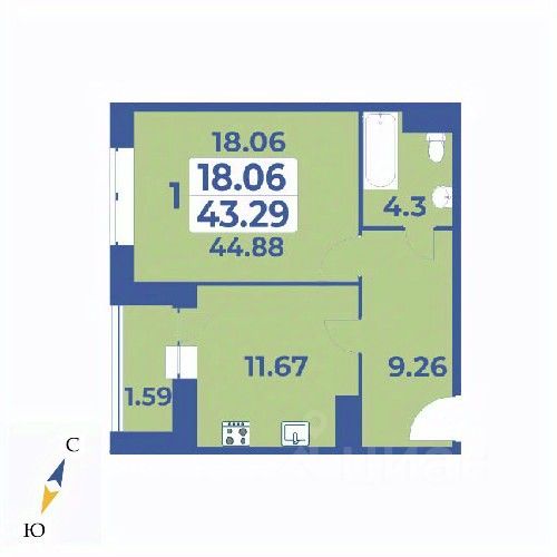 Продаётся 1-комнатная квартира в строящемся доме (Корпус 6), срок сдачи: IV-кв. 2025, общей площадью 44.88 кв.м., на 5 этаже. Монолитный жилой дом комфорт класса, под литерами "А" и "Б". Облицовка вентилируемыми фасадами.