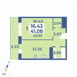 Продаётся 1-комнатная квартира в строящемся доме (Корпус 6), срок сдачи: IV-кв. 2025, общей площадью 43.61 кв.м., на 6 этаже. Монолитный жилой дом комфорт класса, под литерами "А" и "Б". Облицовка вентилируемыми фасадами.