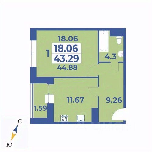 Продаётся 1-комнатная квартира в строящемся доме (Корпус 6), срок сдачи: IV-кв. 2025, общей площадью 44.88 кв.м., на 6 этаже. Монолитный жилой дом комфорт класса, под литерами "А" и "Б". Облицовка вентилируемыми фасадами.