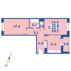 Продаётся 2-комнатная квартира в сданном доме (Корпус 4), срок сдачи: I-кв. 2024, общей площадью 64.1 кв.м., на 3 этаже. Монолитный жилой дом комфорт класса, под литерами "А" и "Б". Облицовка вентилируемыми фасадами.