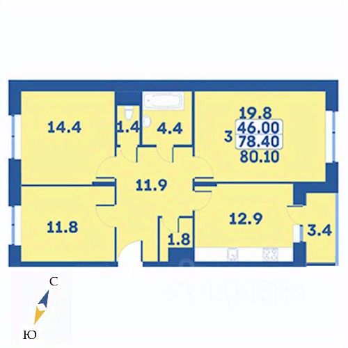 Продаётся 3-комнатная квартира в сданном доме (Корпус 4), срок сдачи: I-кв. 2024, общей площадью 80.1 кв.м., на 5 этаже. Монолитный жилой дом комфорт класса, под литерами "А" и "Б". Облицовка вентилируемыми фасадами.