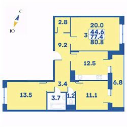 Продаётся 3-комнатная квартира в сданном доме (Корпус 4), срок сдачи: I-кв. 2024, общей площадью 80.8 кв.м., на 7 этаже. Монолитный жилой дом комфорт класса, под литерами "А" и "Б". Облицовка вентилируемыми фасадами.