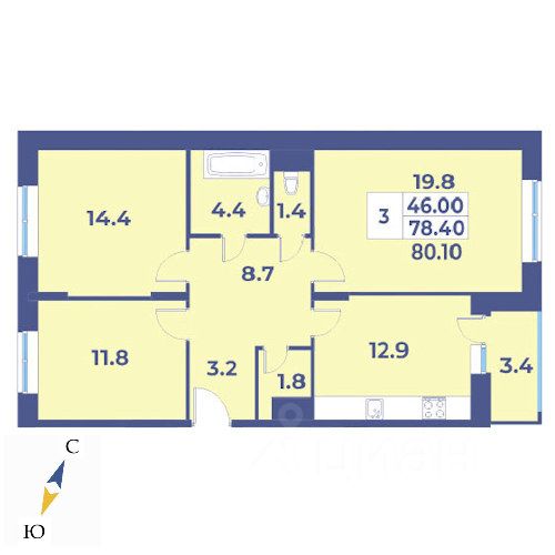 Продаётся 3-комнатная квартира в сданном доме (Корпус 5), срок сдачи: IV-кв. 2024, общей площадью 80.1 кв.м., на 4 этаже. Монолитный жилой дом комфорт класса, под литерами "А" и "Б". Облицовка вентилируемыми фасадами.