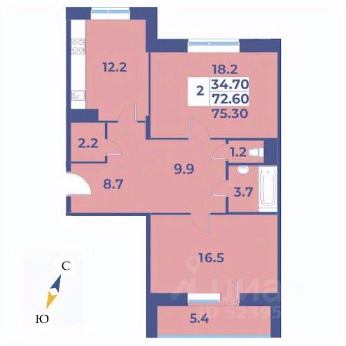 Продаётся 2-комнатная квартира в сданном доме (Корпус 5), срок сдачи: IV-кв. 2024, общей площадью 75.3 кв.м., на 6 этаже. Монолитный жилой дом комфорт класса, под литерами "А" и "Б". Облицовка вентилируемыми фасадами.