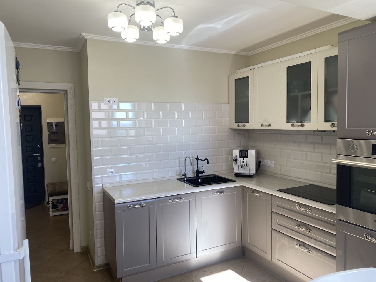 Квартира продается вместе с кухонной мебелью и встроенной техникой, включая посудомойку и вытяжку.