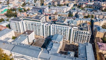 На придомовой территории выполнен ландшафтный дизайн с использованием взрослых деревьев редких видов. В комплексе оборудован двухуровневый подземный паркинг.