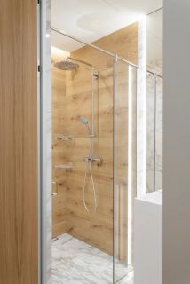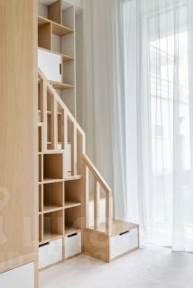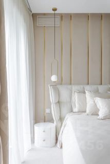Стиль квартиры выдержан в спокойных природных оттенках. В отделке использованы высококачественные экологически-чистые материалы. Вся мебель изготавливалась по индивидуальным проектам. Квартира укомплектована всей необходимой бытовой техникой, а также системой Умный Дом, лазерным проектором с автоматически выдвигающимся экраном, биокамином. Установлена система приточно-вытяжной вентиляции, кондиционирования и увлажнения воздуха.