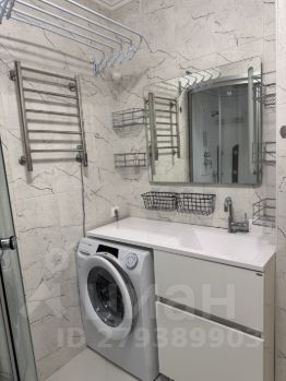 Совмещенный санузел: душевая кабина, электрический полотенцесушитель, стиральная машина.