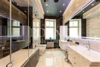 Лот: 79690. Предлагается к продаже роскошная пятикомнатная квартира с дизайнерским ремонтом площадью 245,9 кв.м. в малоквартирном дореволюционном особняке на Пречистенке. Функциональная планировка: гостиная-столовая, кухня, три спальни, две из которых со своими санузлами, кабинет, гардеробная, гостевой санузел, постирочная, прихожая. Квартира полностью укомплектована мебелью и техникой ведущих мировых производителей: мебель и декор Roberto Cavalli, Mania, Zanaboni, керамика Villeroy&Boch, сантехника Philippe Starck и Duravit. Высота потолков 3,80 м. Охраняемая территория. Закрытая наземная парковка. Реконструированный особняк на 6 квартир является бывшим доходным домом купца первой гильдии К. П. Половинника; построен по индивидуальному проекту архитектора В. К. Кильдишева. Богатая входная группа представлена французскими балконами и окнами, парадными лестницами. Участник ассоциации AREA.
