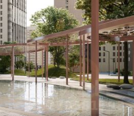 На территории комплекса будут организованы паркинги, двор-парк с зонами отдыха. Внутренняя инфраструктура будет представлена магазинами, аптеками и клиникой, салонами красоты.