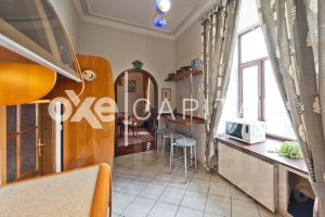 При площади 108.2 кв.м планировка квартиры очень функциональная. Комнат три, две спальные комнаты и один санузел. Учитывая последний этаж (4), гардеробная с антресолью. Хороший и качественный ремонт. Дубовые двери, паркет ценной породы дерева. Кухня фирмы Пининфарина. В квартире оригинальный антикварный камин работы фабрики Кузнецова. Солнечная сторона. Большие окна делают ее светлой. Высокие потолки- 3.8м. Есть возможность расширения площади за счет чердака. Вся перепланировка узаконена. Вид на улицу и на тихий зеленый двор. Дом в окружении посольств ,государственных учреждений и музеев. Рядом дома ЦК и аппарата правительства СССР.