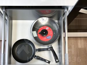 Сидя за столом на кухне, уже оснащённой бытовой техникой и кухонными принадлежностями, взгляд утопает в зелени высоких деревьев.