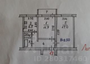 Общая площадь 47.2 кв.м, кухня 6.5 кв.м, комнаты 17 + 11.9 кв.м, высота потолков 2,5 м, санузел раздельный, балкон застеклен.