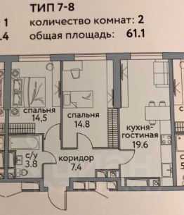 Отличная планировка квартиры: две изолированные комнаты и отдельно кухня- гостиная.