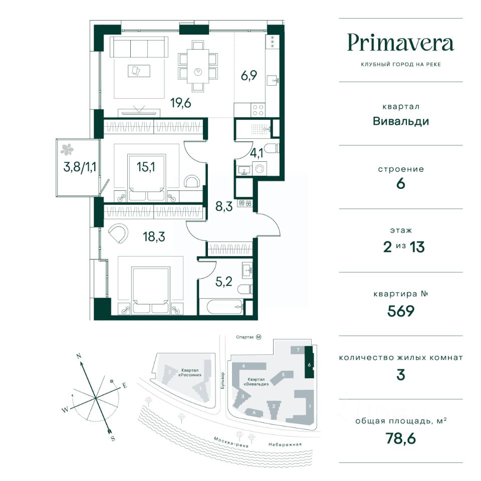 Клубный город на реке Primavera — это современный жилой комплекс премиум-класса, расположенный на первой береговой линии Москвы-реки в экологически чистом районе Покровское-Стрешнево. Под панорамными окнами квартир находится собственный экопарк с продуманной сетью прогулочных дорожек и современными детскими и спортивными площадками. За парком расположена набережная с собственным пляжем и зонами для отдыха. Клубный город на реке Primavera предлагает широкий выбор планировок для различных жизненных сценариев: от просторных однокомнатных квартир до пентхаусов и жилых помещений с террасами и патио. Выберите из 120 вариантов эргономичных планировок стандартного и евроформата. Из каждой квартиры открываются красивые виды на реку с углом обзора в 270 градусов. Дизайнерские лобби предлагают панорамный обзор на благоустроенный двор. Высокие потолки в 6 метров и качественная отделка создают атмосферу, схожую с пятизвездочными отелями. В Primavera есть всё необходимое для комфортной жизни в мегаполисе: • Образование для детей в шаговой доступности: 4 школы, 8 детских садов и развивающие центры с кружками и секциями. • Удобства на расстоянии приятной прогулки: супермаркеты, кафе, рестораны с верандами, салоны красоты, аптеки и многофункциональный центр для шоппинга и развлечений. • Умный дом: автоматизированное бесконтактное управление основными системами доступа и безопасности через мобильное приложение. Клубный город на реке Primavera выгодно сочетает комфорт городской жизни с близостью к природе. Живите в месте, где все создано для вашего удобства!