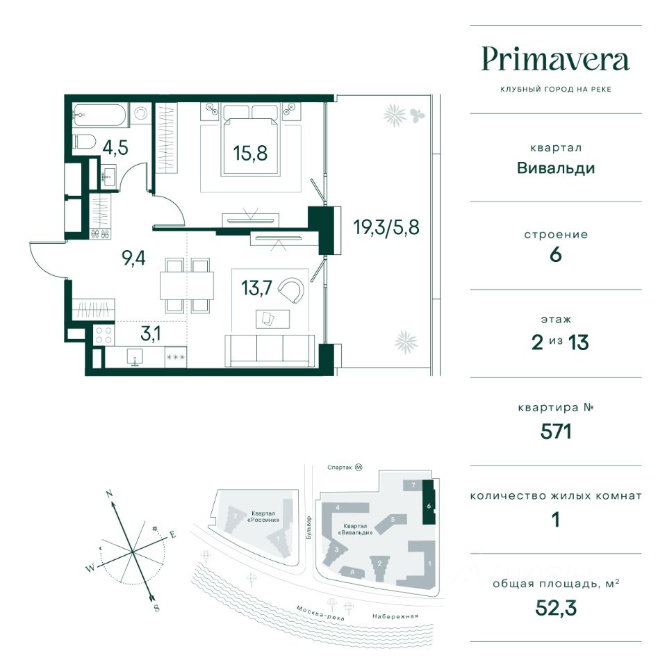 Клубный город на реке Primavera — это респектабельный проект премиум-класса на первой береговой линии Москвы-реки в экологически безупречном районе — Покровское-Стрешнево. Под панорамными окнами квартир расположился собственный экопарк, площадью 12 гектаров с сетью прогулочных дорожек, оборудованный детскими и спортивными площадками, а за ним набережная с собственным пляжем и зонами отдыха. Клубный город на реке Primavera предлагает впечатляющий выбор планировок для любого жизненного сценария: от просторных однокомнатных квартир до пентхаусов и квартир с видовыми террасами или патио. Выбирайте из 120 вариантов эргономичных планировок стандартного и евроформата. В проекте доступны квартиры площадью от 40 до 209 м², в каждой из которых открываются непревзойденные виды на реку, а угол обзора составляет 270 градусов. Из дизайнерских лобби открывается панорамный обзор на зеленый благоустроенный двор. Статусное мебелирование, потолки высотой 6 м и комфортная лаунж-зона отсылают к стилистике высококлассных пятизвездочных отелей. В Primavera есть все, что может предложить мегаполис, здесь все сосредоточено вокруг вас и настроено на ваши желания: - Всестороннее детское развитие в паре шагов от дома: 4 школы, 8 детских садов, развивающие центры с кружками и секциями. - Комфорт мегаполиса на расстоянии приятной прогулки: супермаркеты, кафе, рестораны с верандами на крыше, салоны красоты, аптеки, компании сферы услуг, многофункциональный центр для шоппинга и развлечений. - Умный дом: автоматизированное бесконтактное управление основными системами доступа, инфраструктуры и безопасности через мобильное приложение и специальные метки. Клубный город на реке Primavera выгодно отличается близостью к природе, совмещенной с насыщенной инфраструктурой.