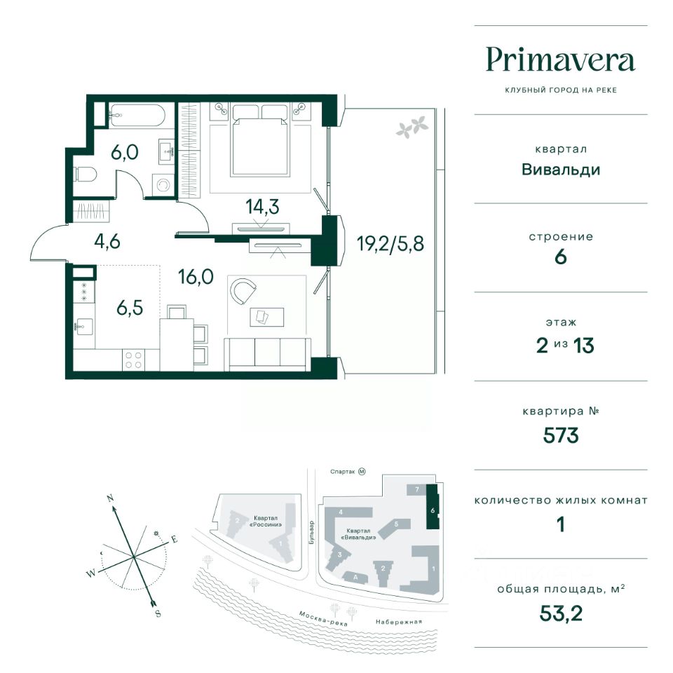 Клубный город на реке Primavera — это современный жилой комплекс премиум-класса, расположенный на первой береговой линии Москвы-реки в экологически чистом районе Покровское-Стрешнево. Под панорамными окнами квартир находится собственный экопарк с продуманной сетью прогулочных дорожек и современными детскими и спортивными площадками. За парком расположена набережная с собственным пляжем и зонами для отдыха. Клубный город на реке Primavera предлагает широкий выбор планировок для различных жизненных сценариев: от просторных однокомнатных квартир до пентхаусов и жилых помещений с террасами и патио. Выберите из 120 вариантов эргономичных планировок стандартного и евроформата. Из каждой квартиры открываются красивые виды на реку с углом обзора в 270 градусов. Дизайнерские лобби предлагают панорамный обзор на благоустроенный двор. Высокие потолки в 6 метров и качественная отделка создают атмосферу, схожую с пятизвездочными отелями. В Primavera есть всё необходимое для комфортной жизни в мегаполисе: • Образование для детей в шаговой доступности: 4 школы, 8 детских садов и развивающие центры с кружками и секциями. • Удобства на расстоянии приятной прогулки: супермаркеты, кафе, рестораны с верандами, салоны красоты, аптеки и многофункциональный центр для шоппинга и развлечений. • Умный дом: автоматизированное бесконтактное управление основными системами доступа и безопасности через мобильное приложение. Клубный город на реке Primavera выгодно сочетает комфорт городской жизни с близостью к природе. Живите в месте, где все создано для вашего удобства!