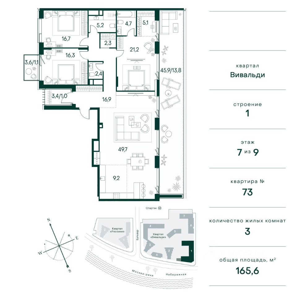 Клубный город на реке "Примавера" — это современный жилой комплекс премиум-класса, расположенный на первой береговой линии Москвы-реки в экологически чистом районе Покровское-Стрешнево. Под панорамными окнами квартир находится собственный экопарк с продуманной сетью прогулочных дорожек и современными детскими и спортивными площадками. За парком расположена набережная с собственным пляжем и зонами для отдыха. Клубный город на реке "Примавера" предлагает широкий выбор планировок для различных жизненных сценариев: от просторных однокомнатных квартир до пентхаусов и жилых помещений с террасами и патио. Выберите из 120 вариантов эргономичных планировок стандартного и евроформата. Из каждой квартиры открываются красивые виды на реку с углом обзора в 270 градусов. Дизайнерские лобби предлагают панорамный обзор на благоустроенный двор. Высокие потолки в 6 метров и качественная отделка создают атмосферу, схожую с пятизвездочными отелями. В "Примавера" есть всё необходимое для комфортной жизни в мегаполисе: • Образование для детей в шаговой доступности: 4 школы, 8 детских садов и развивающие центры с кружками и секциями. • Удобства на расстоянии приятной прогулки: супермаркеты, кафе, рестораны с верандами, салоны красоты, аптеки и многофункциональный центр для шоппинга и развлечений. • Умный дом: автоматизированное бесконтактное управление основными системами доступа и безопасности через мобильное приложение. Клубный город на реке "Примавера" выгодно сочетает комфорт городской жизни с близостью к природе. Живите в месте, где все создано для вашего удобства!