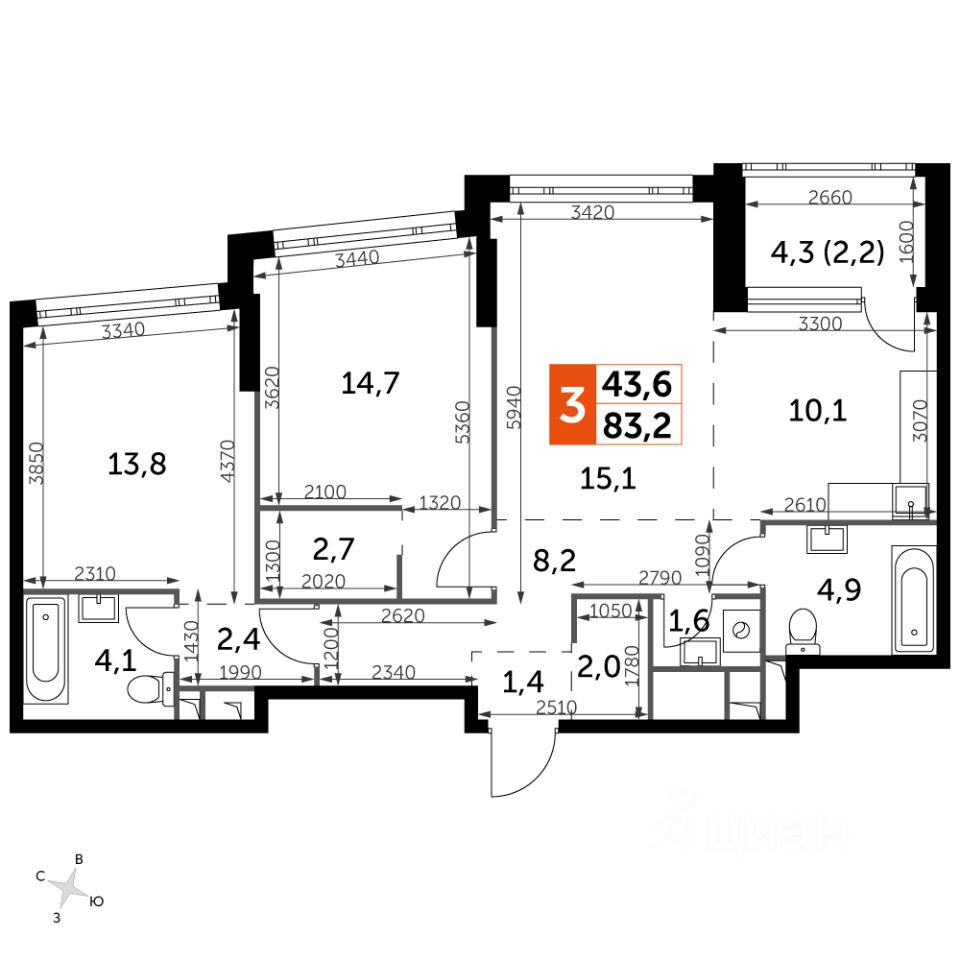 Продаётся трехкомнатная квартира общей площадью 83,2 кв.м. на 19-м этаже 28 этажного дома в ЖК Бизнес класса "Роттердам" от застройщика ФСК!